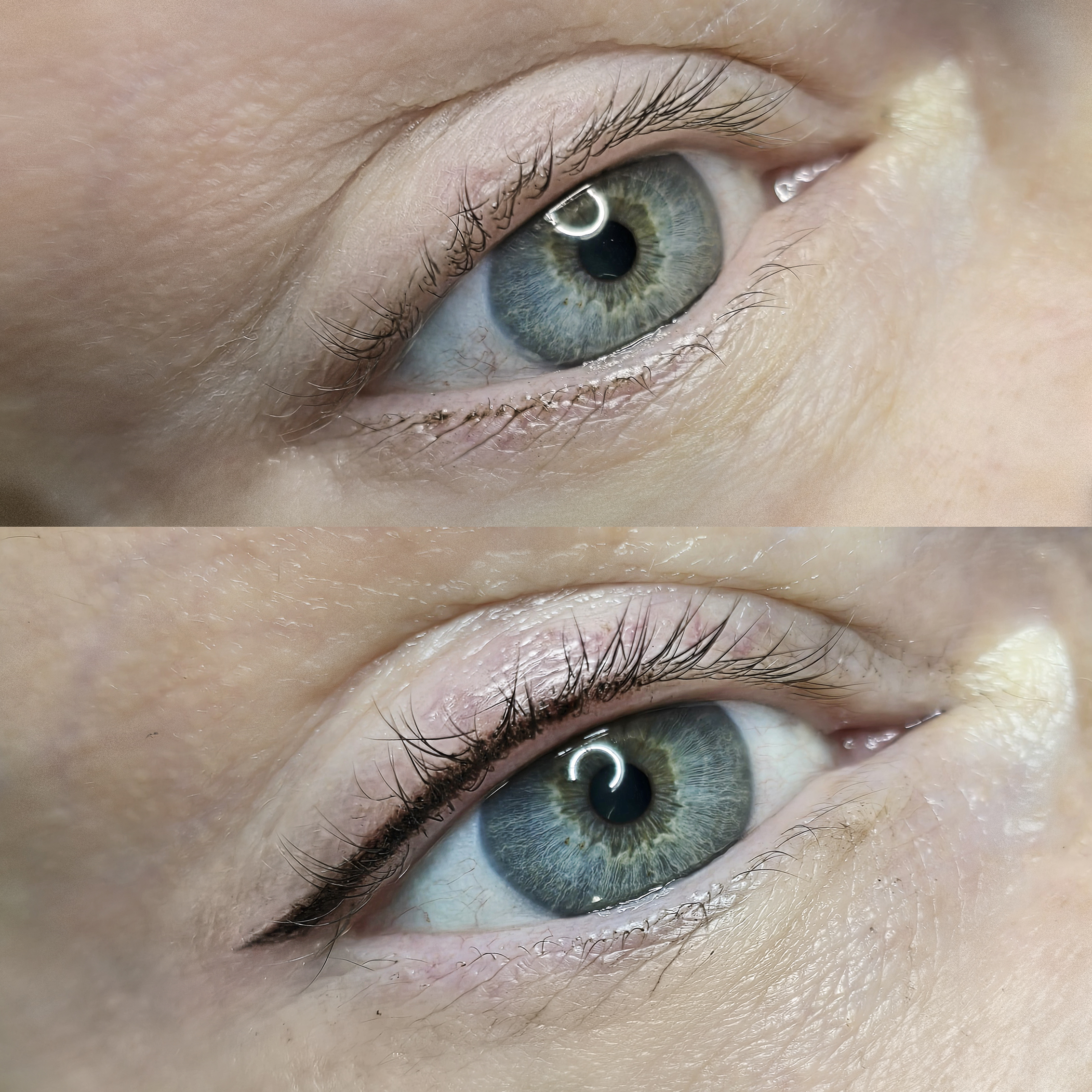 Meziriásová linka je ideálnou voľbou pre ženy, ktoré si chcú uľahčiť ranné líčenie alebo dodať pohľadu hĺbku a opticky zahustiť riasy. Jemná linka dokáže zakryť aj redšie alebo vypadnuté riasy a vytvoriť upravený vzhľad bez každodenného líčenia. Ak vás každodenné líčenie nebaví, práve teraz je ten správny čas na permanentný make-up – výsledkom bude ušetrený čas a pocit, že ste vždy upravená, bez ohľadu na okolnosti. Používam výhradne profesionálne pigmenty s vysokou stálosťou, ktoré neblednú do neželaných odtieňov a časom sa prirodzene vytrácajú. Výsledok vydrží niekoľko rokov, v závislosti od typu pokožky, rýchlosti metabolizmu a životného štýlu. Medziriásová linka sa tetuje priamo medzi jednotlivé riasy, čím vytvára efekt hustejších a výraznejších rias. Je vhodná pre všetky typy očí, vrátane citlivých alebo nositeliek okuliarov a šošoviek.